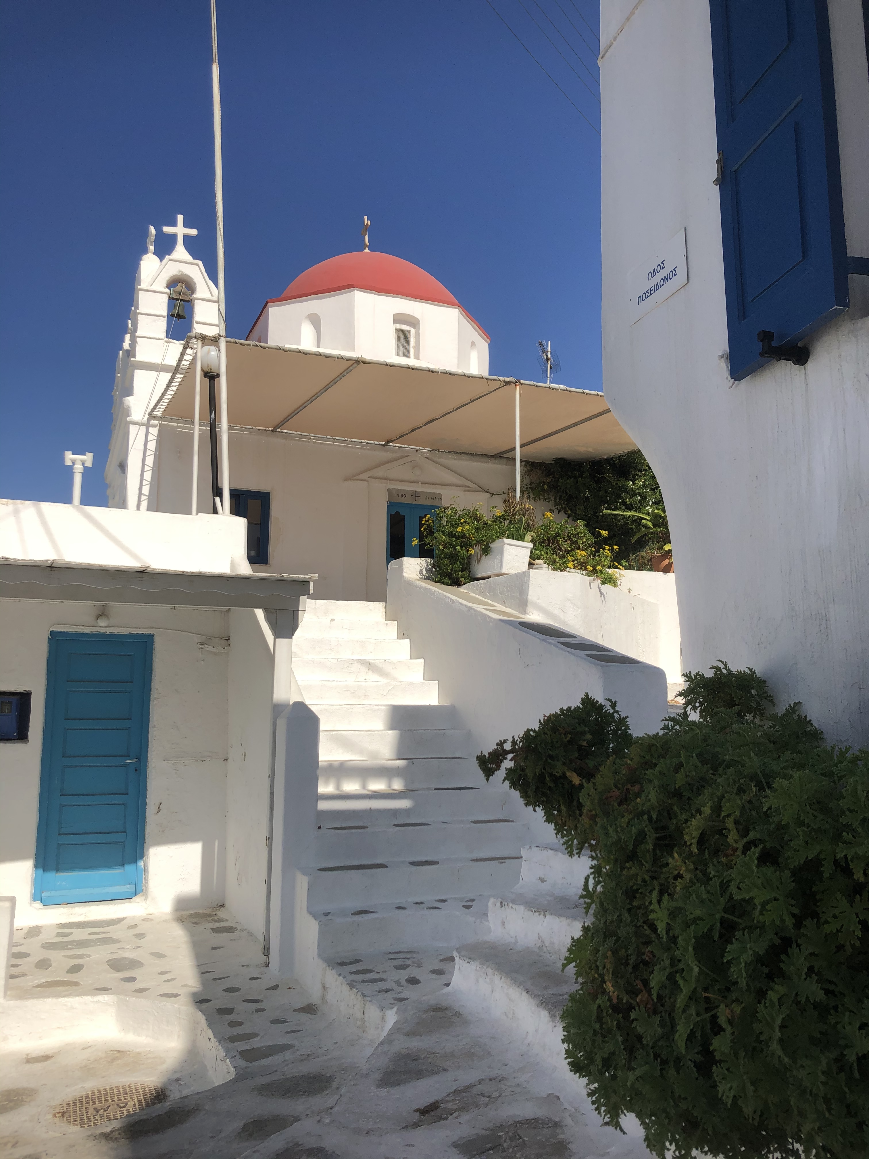 Ansonsten sind vor allem wieder die Gassen zwischen den Häusern im Kykladenstil (weiß – verwaschen mit roten oder blauen Türen, Balkonen oder Fenstern) ein wahrer Augenschmaus.