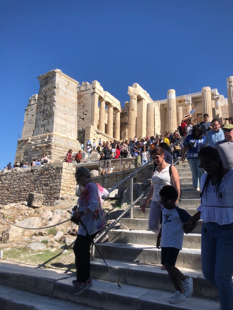 Weiter auf dem Weg, sieht man schon die gigantischen Bauten, die mittlerweile über 2500 Jahre alt sind. Gerade weil es einer der geschichtsträchtigsten Orte Europas ist, braucht man sich nicht wundern, dass tausende Menschen ihn sehen und bestaunen wollen. Dementsprechend viel war los, obwohl wir außerhalb der Saison hier sind.