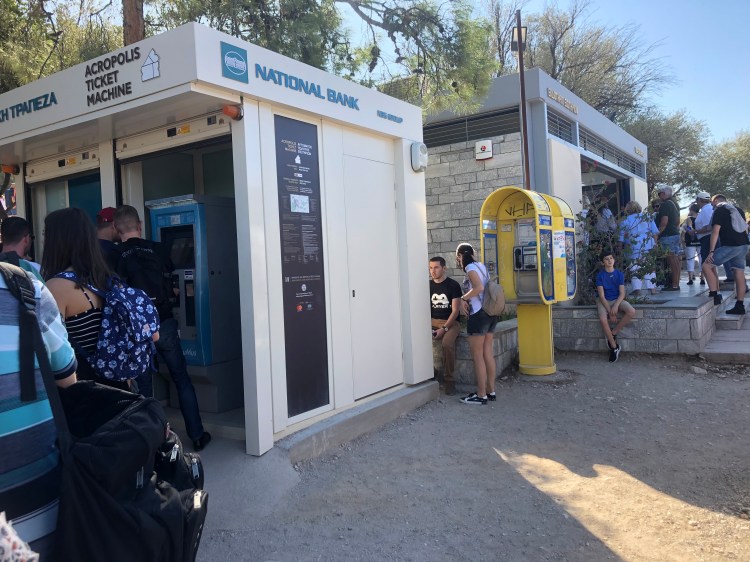 Angekommen am Fuße der Akropolis sahen wir gleich die 50 Meter lange Warteschlange am Ticketschalter und ich bereute erst keine Fast-Lane-Tickets gekauft zu haben. Aber Irrtum! Die Schlange war durch die 5 Schalter und den Automaten so schnell abgefertigt, dass wir nach 10 Minuten schon auf den Treppen nach oben waren. Der Eintritt kostet 20 Euro pro Person.