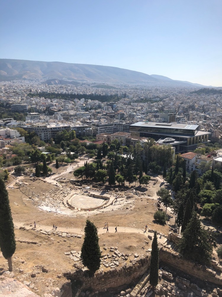 Auf dem Weg nach oben kommt man am Dionysos-Theater vorbei, welches als das wichtigste Theater im antiken Griechenland galt und als Geburtstätte des Dramas. Seinen Namen verdankt es dem Gott des Weines und der Ekstase (Wiki).
